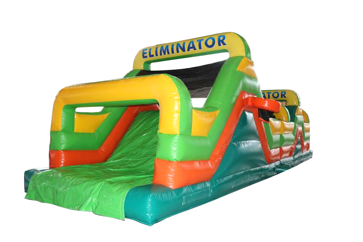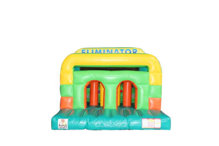 The Eliminator Obstacle Course has been our most popular inflatable over the last four to five years and the hence the reason we have added to the number of Eliminators we now hire and they are available in four different colours. (red and blue / orange and black / multi coloured / call of duty camouflaged )