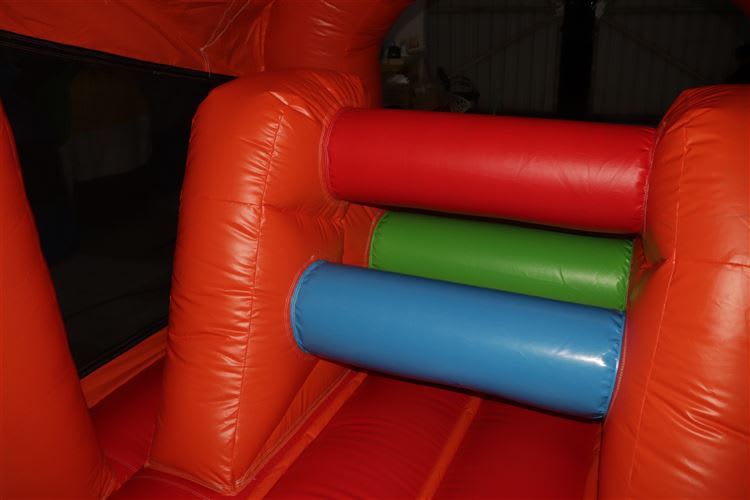 This vicious looking Tiger Obstacle Course will definitely make a lasting impression with your kids and without doubt is one of our most popular items. Just watch the kids faces light up as they enter this huge Tiger's mouth, through the obstacles and slide out through the other end. This massive Obstacle Course has two slides, a rock climbing wall, a bish and bash area and bouncy areas within. It is fully covered with safety netting to each side for ease of monitoring and supervision. This inflatable is perfect for birthday parties, communions, confirmations, school days, sports days and festivals. Our obstacle courses come in all shapes, sizes and colours and they are suitable for kids of all ages.