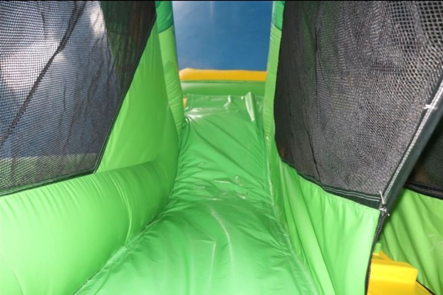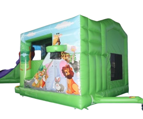 This trendy inflatable has a large bouncy area, with a climbing stairs that leads up to the top of an 8ft high internal slide. This is the only castle on the market that has an internal slide of this size. The castle is enclosed by netting.