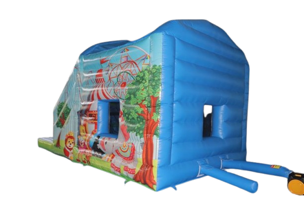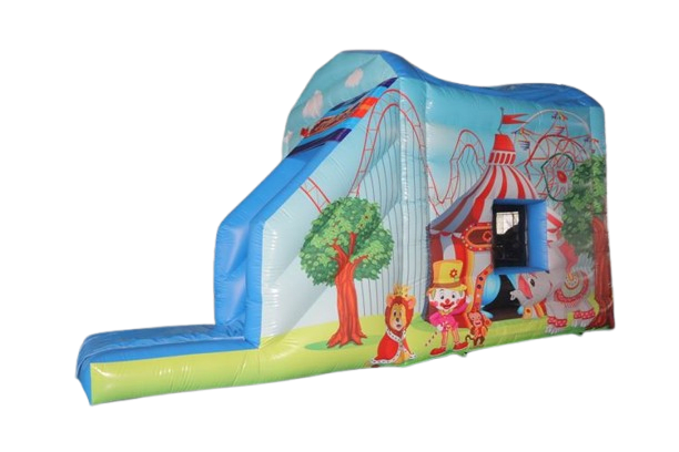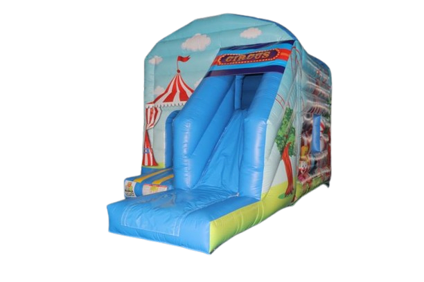 This medium size castle is perfect for smaller gardens or town houses. Considering its only 12ft wide, it practically fits in all gardens. This unit comprises of a bouncy area, with internal 'biff and bash' and a slide coming out towards the front of the Castle and is fully covered.