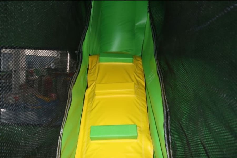 This trendy inflatable has a large bouncy area, with a climbing stairs that leads up to the top of an 8ft high internal slide. This is the only castle on the market that has an internal slide of this size. The castle is enclosed by netting.