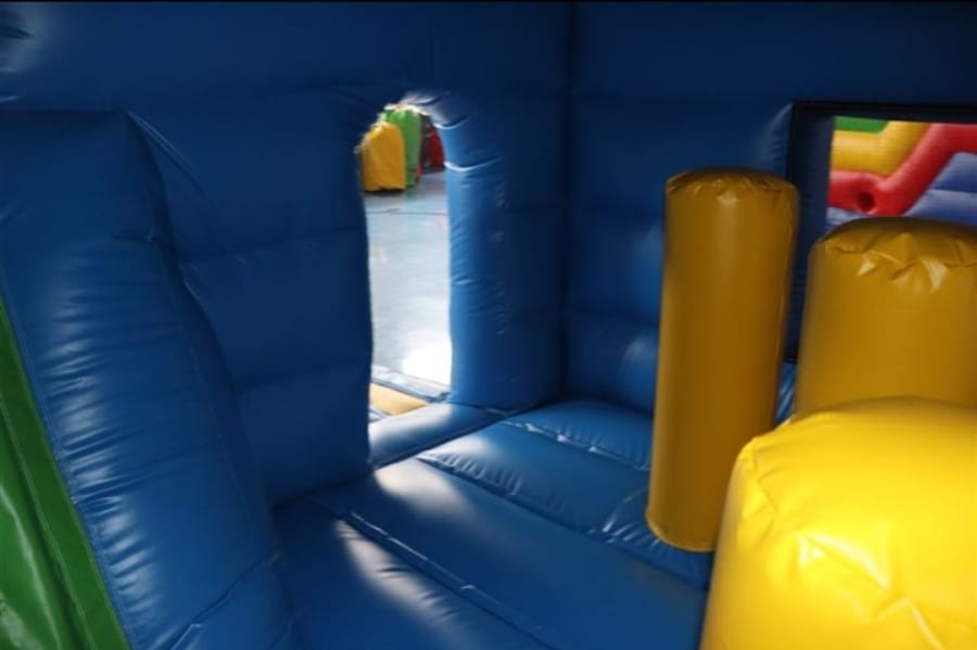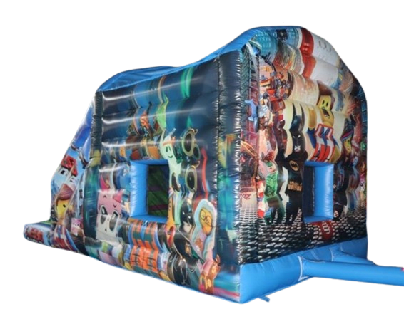 This medium size castle is perfect for smaller gardens or town houses. Considering its only 12ft wide, it practically fits in all gardens. This unit comprises of a bouncy area, with internal 'biff and bash' and a slide coming out towards the front of the Castle and is fully covered.