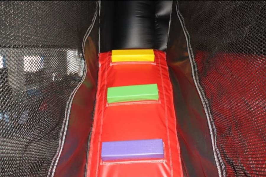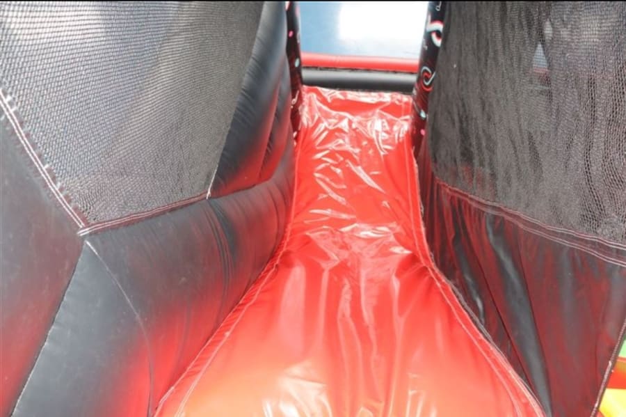 This trendy inflatable has a large bouncy area, with a climbing stairs that leads up to the top of an 8ft high internal slide. This is the only castle on the market that has an internal slide of this size. The castle is enclosed by netting.