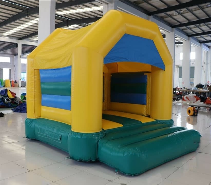 For those smaller gardens or those younger kids, this is the perfect castle for you. At only 10ft in width, this castle will fit in almost all gardens. This Jungle themed inflatable comes with a raincover and is fully enclosed over the back wall, leaving it a very save castle.