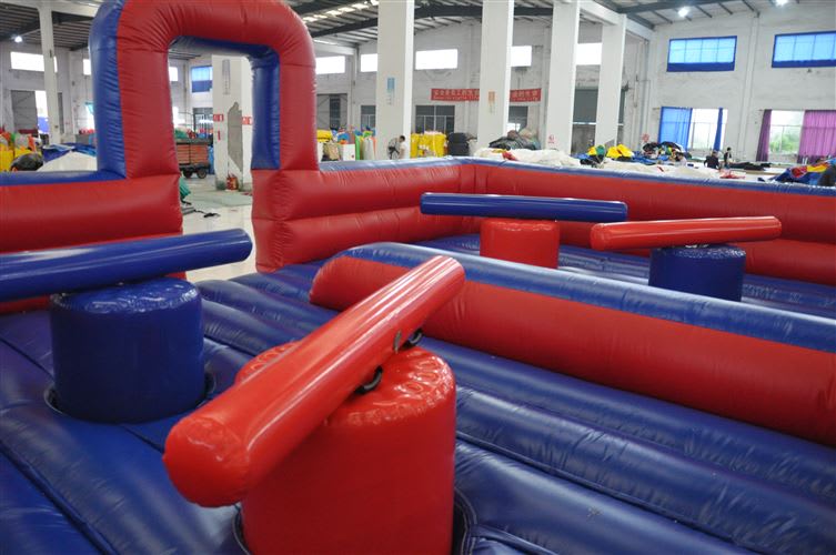 Four opponents can operate at the same time on this inflatable. Two opponents faces off against each other on one side and two faces off on the other side on their individual podiums. When the game starts, each competitor must hit their opponent with the soft inflatable baton until one competitor is knocked off the podium and the other competitor wins. The last man or woman standing is the winner! This is Gladiator Duel is excellent fun to play and even more fun to watch!