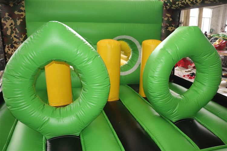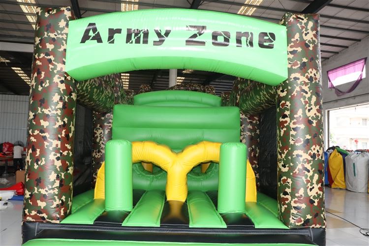 When you see this inflatable on your lawn, it is definitely a ‘sight to behold’….The amount of customers that rings up and says’ “little Johnny or little Mary, cant decide between an obstacle course or a high rise slide, what do you recommend Derek?” Simple answer always is, “The Circus Adventure Run” or "The Army Zone Adventure Run" is what you want and trust us when we say, it wont disappoint. This inflatable is the best of both worlds. It comes in two parts, an obstacle part and a high rise slide part.
