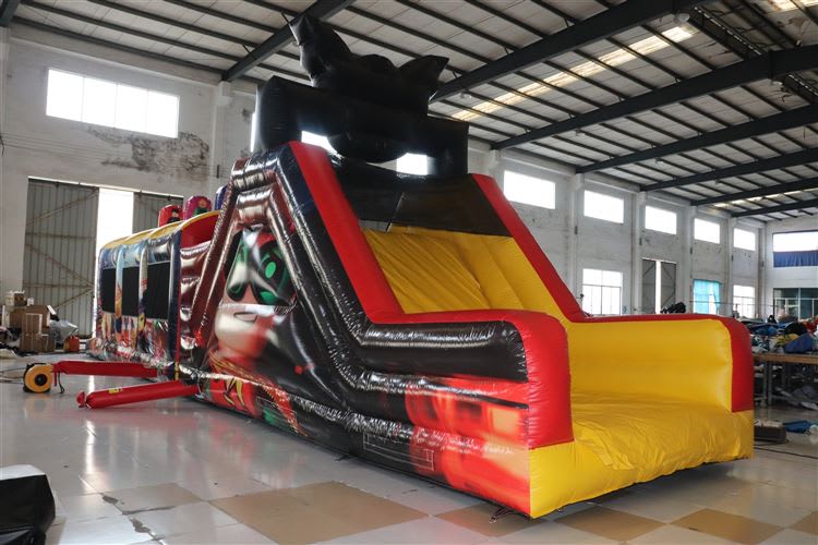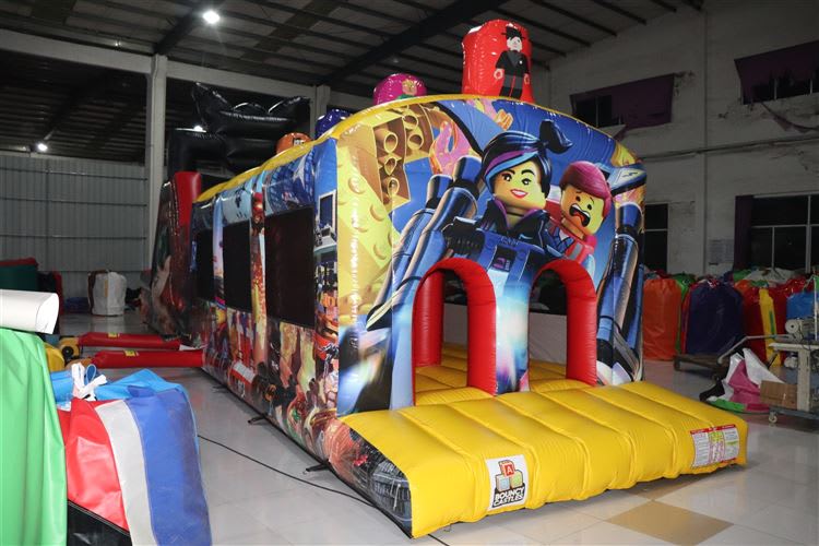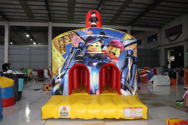 WOW, WOW, WOW..........So here at ABC Bouncy Castles, we are so very excited to introduce this brand new Lego Obstacle Course to our ABC fleet of Inflatables and we are sure that this impressive inflatable is going to be a big hit with your kids. The colors are very eye catching, and this unit will definitely brighten up any party or corporate event. It is digitally printed throughout with Lego characters and it will impress all Lego Movie fans out there. Have a look at Batman, which features on the top of the slide. It draws the attention and makes this obstacle course look big and impressive. It is suitable for boys and girls and we would recommend it for older kids. It has a rain cover so it is suitable for Irish weather. It consists of pop-up obstacles, tunnels, a bounce area, 2 slides, 1 small & 1 giant rock climbing slide.