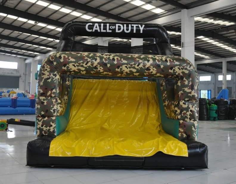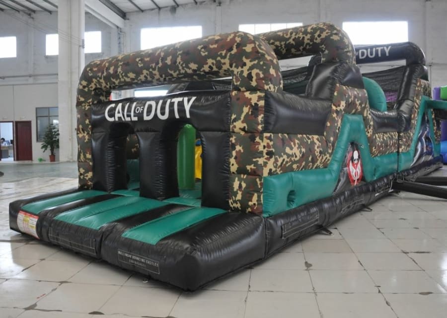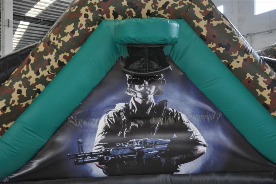 The Eliminator Obstacle Course has been our most popular inflatable over the last four to five years, so we’ve decided to keep the same model, but we decided to jazz it up a little and we are delighted with the end result. The new Camouflaged Call of Duty artwork will be a real hit at any party.