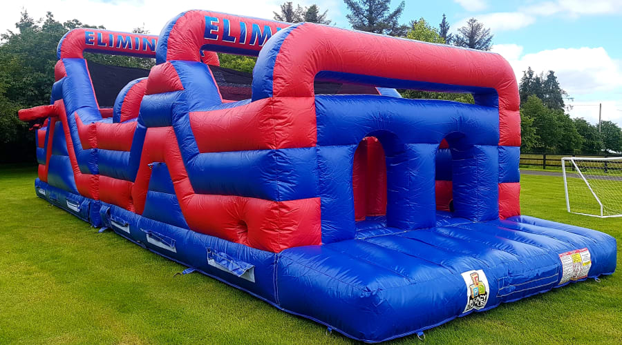 The Eliminator Obstacle Course has been our most popular inflatable over the last four to five years and the hence the reason we have added to the number of Eliminators we now hire and they are available in four different colours. (red and blue / orange and black / multi coloured / call of duty camouflaged )