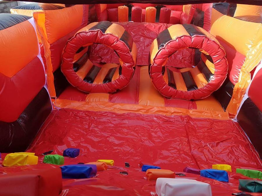The Eliminator Obstacle Course has been our most popular inflatable over the last four to five years and the hence the reason we have added to the number of Eliminators we now hire and they are available in four different colours. (red and blue / orange and black / multi coloured / call of duty camouflaged )