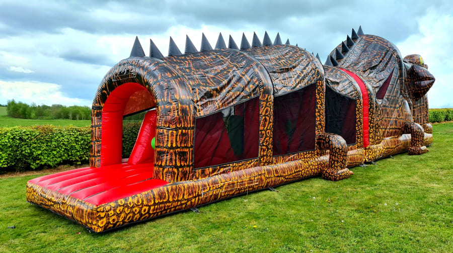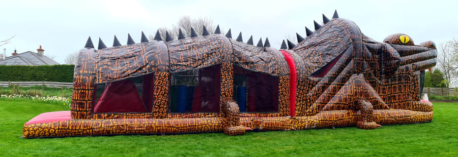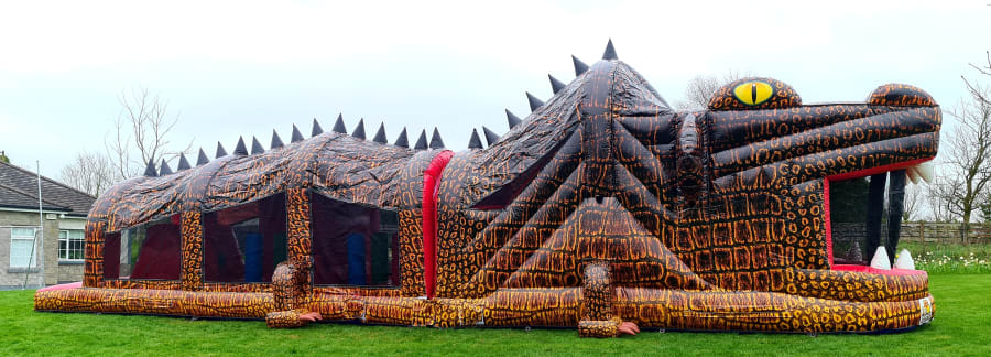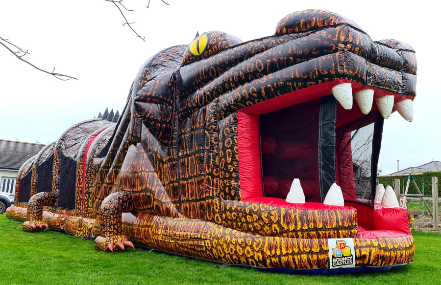 This massive digitally printed 3D Crocodile Obstacle Course is without a doubt one of our most impressive and most popular inflatables and is a real head turner on any lawn.